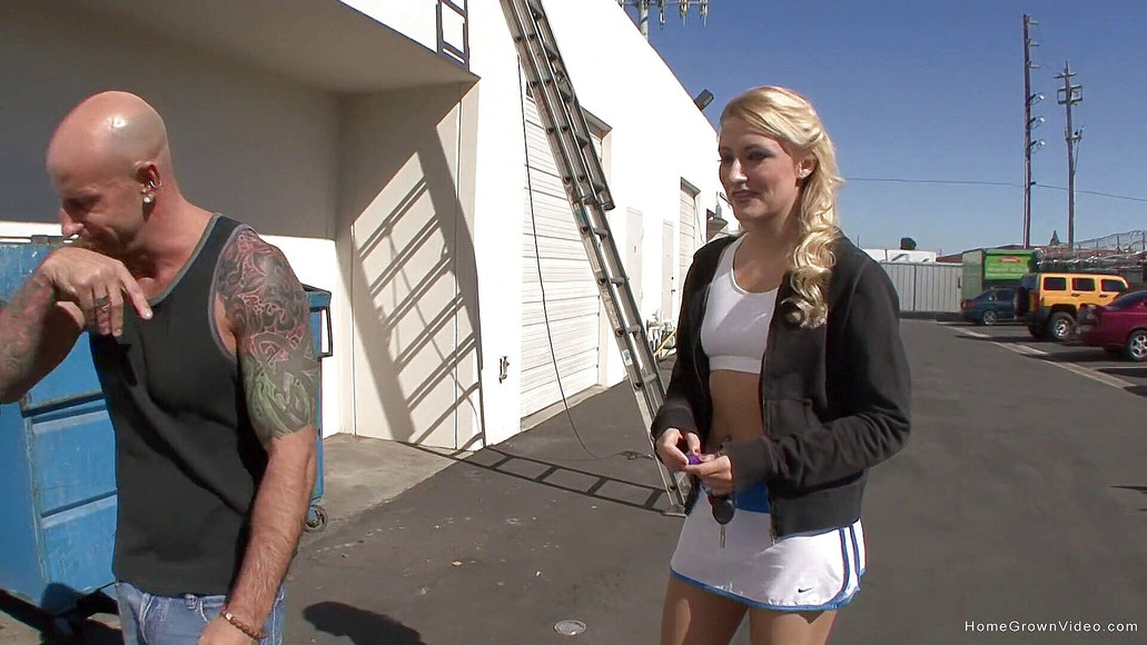 Blonde babe Mallory Rae always gets attention when she's playing tennis, but not for her ball skills on the court. The stunning girl is so easily led it doesn't take long for Barry to convince her to come back to the studio for a tour, which inevitably leads to checking out her cameltoe in the sexiest little pink undies. Once the ice is broken he's getting his tongue in there, licking out her shaved pussy, revealing his incredible cock for her to suck on. She's not as innocent as she looks, gorging on his big meat and then sliding her wet pussy down on his thick tool! See one of the hottest little babes getting it good until Barry is splashing his hot load out all over her pussy lips!