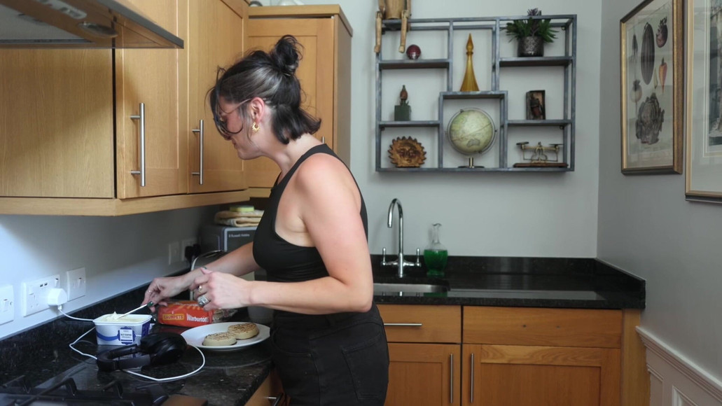 Your Domme roommate is sweating from the heat out, and you're desperate for a sniff of her armpits. She notices your desire and indulges you, humiliating and teasing you for your perverted interest in her sweaty fragrance.