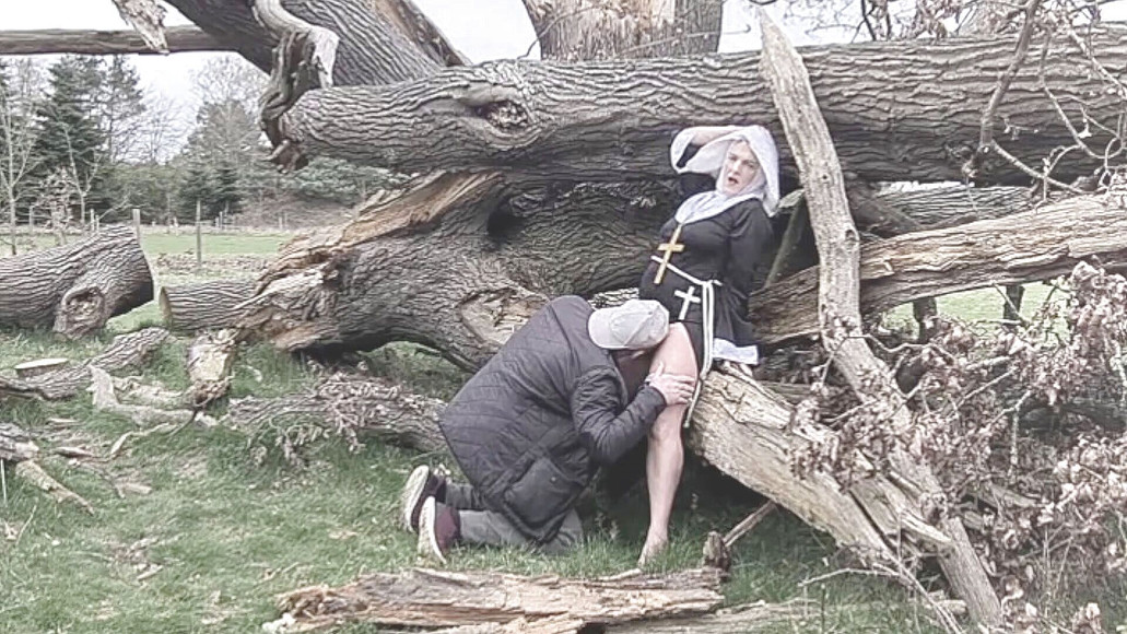Superior Nun has come across Nun Kylie masturbating in outdoor and watches her whilst getting horny until stepsister Kylie cums. Superior Nun goes off to meet her lover and masturbates for him in the woods before he licks her pussy clean. She enjoys his cock before riding him till she cums.