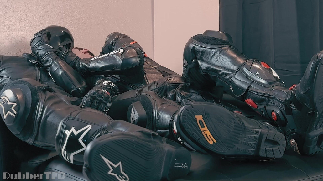 Got rubber_fx geared up in full leather bike suit with me with boots and gloves. We stimuated each other with our gloves and mouths.