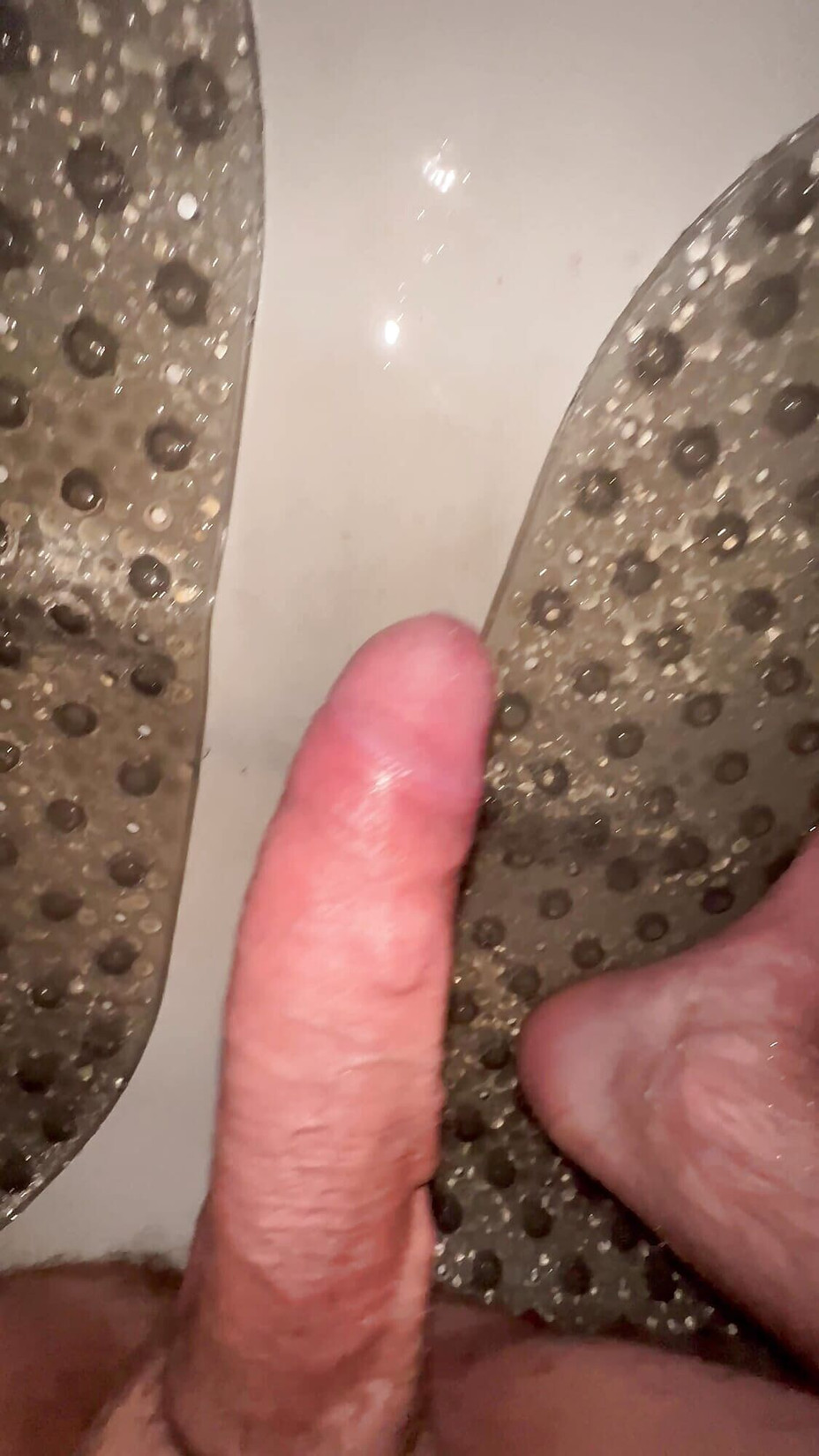 Massive cum shot after wanking my big uncut cock and emptying my huge sacks.