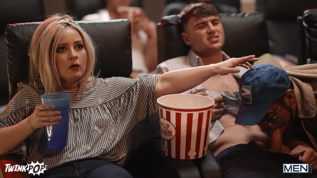 Twinkpop - Dante, sneaking over to suck Michael's cock, horny guys are caught by Twink usher Troye Dean