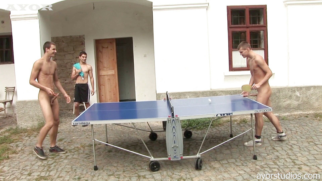 Benjamin and Danton were playing ping poing in the afternoon. Both of them played naked and each had an erection after a while.