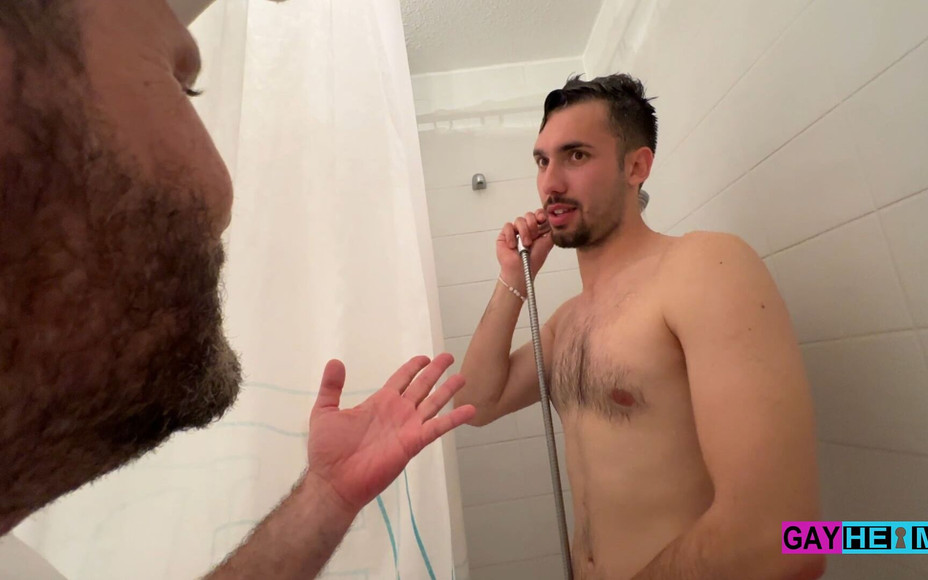 After the fuck with the Yugoslavian bottom Nikola and after the second cumshot with me, the Gayheim maker, here is the soaping under the shower with questions and answers