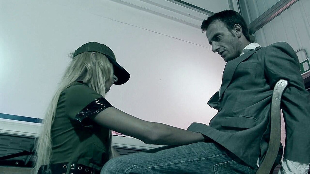 This Eastern European guy thought he could just jump a fence and get into the country unnoticed. Unfortunately, a diligent border patrol agent spots him and she moves in for the arrest. He is handcuffed and brought into the station for a thorough interrogation. Things start looking up for him as the busty blonde agent goes against protocol and takes advantage of her power and begins sucking his foreign cock. The perp likes what he's seen of this new country so far! The interrogation continues as the agent babe peels off her uniform and rides his cock before bending over and letting him hit it doggystyle. The final portion of the search entails testing the private ball sac and sperm density. He lays into her mouth one last time before releasing his payload into her mouth. Still fearing the worst, the guy cuffs the agent and bolts. You'd think she would have allowed him entry anyway?