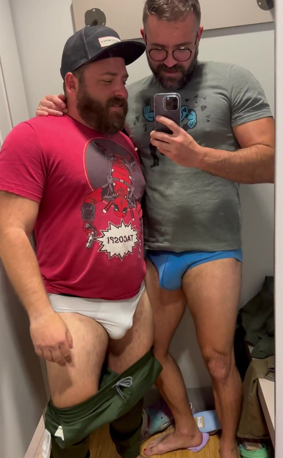 Isn't it fun going shopping together to buy one pear of pants that will fit both of us? Heres is a small glimpse in