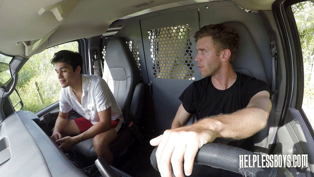 Cute young college boy Jason Wolf has been abandoned in the woods by the fraternity he's pleading to. It looks like he's outta luck until he spots a white van approaching. He manages to convince the driver, Todd, to give him a lift. When the hazed hottie later reveals that he can't repay Todd he's given a harsh dose of reality. Nothing is free and if you want a ride the price is sexual submission. The desperate wannabe frat-pal is soon tied up and gagging on BWC. Todd roughly fucks his little brown ass in the van and back at the dungeon. After a lot of BDSM he continues pounding him then dumps a huge load on his face.