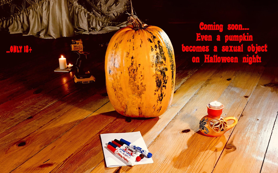 The holiday of the year is coming soon - Halloween! I'm preparing a special pumpkin! Its mouth is wide open, and it's ready to take an excited cock inside!