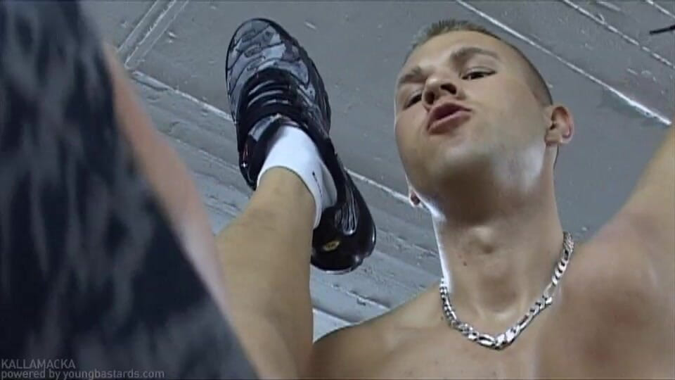 Jordan Fox and his bro Tony are chilling out in an underground car park. But Jordan is bored and needs some action. He pulls out his fat cock and quickly engages Tony in a deep throat blowjob, followed by some hard anal pounding.