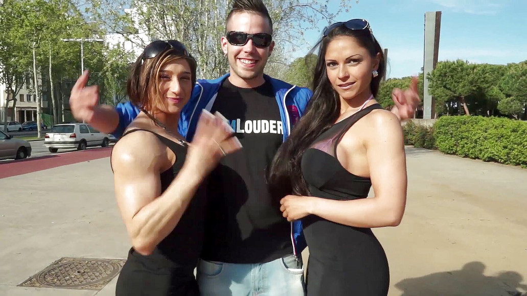 Stunning MILF and muscular babe sharing hard cock and getting covered in sperm.