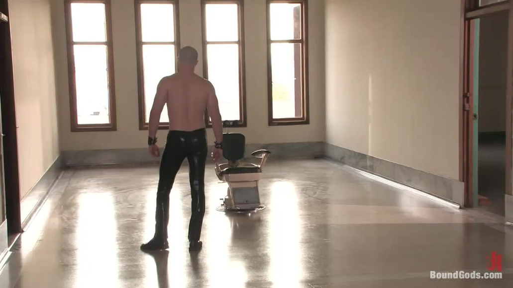 New slave chad manning visits the Armory. He walks up to the third floor to find Master Steve Trevor at the top of the stairs in full leather. With a crop in his hand smacking against his leather chaps, Master Steve gestures for slave chad to undress. Slave chad crawls up to the master to receive his warm piss. Master Steve punishes slave chad for not being completely naked. He ties chad up and smacks him hard with his crop. Steve then walks chad like a dog to a different room. Steve ties chad to the ceiling and flogs his entire body until he screams. It's getting dark, so Steve ties chad to the barber chair and fucks him hard until he comes.
